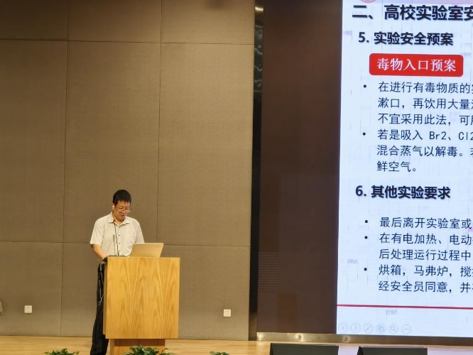 安全管理工作的核心内容,包括实验室安全风险的评估与处置措施。通过讲解本院历年来安全事故的案例及其它潜在的隐患,提出了针对性的思考与建议。他提醒同学们要提高实验室安全防范意识,严格遵守实验室各项安全条例和实验室准入制度,认真学习实验室安全知识和掌握防范技能,切实保护个人生命和财产安全。