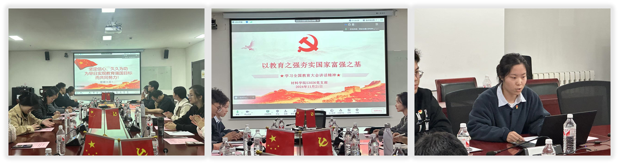 硕3026党支部副书记张宇轩同志以孔子“有教无类”理念为切入点,带领大家学习了习近平总书记在全国教育大会上的重要讲话。习近平总书记强调:“我们要建成的教育强国,是中国特色社会主义教育强国,应当具有强大的思政引领力、人才竞争力、科技支撑力、民生保障力、社会协同力、国际影响力,为以中国式现代化全面推进强国建设、民族复兴伟业提供有力支撑。”张宇轩同志指出,建设教育强国是一项长期而艰巨的任务,需要我们每一个人的共同努力。呼吁各支部党员同志要以习近平总书记的重要讲话精神为指引,团结一心,锐意进取,争做合格的社会主义建设者和接班人,实现教育强国的宏伟目标而接续奋斗!