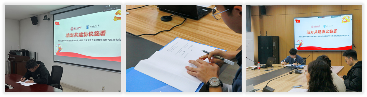 前行不忘来时路,初心不改梦归处。我们要继续发扬先辈精神,赓续红色血脉,不忘初心,砥砺前行。活动第五项,双方党支部负责人签署支部结对共建协议书,大家都希望通过结对共建这个契机,增强交流互鉴,增加党风建设,一起开拓进取,奋勇拼搏,为双方党建工作和科研生活添砖加瓦,贡献自己的蓬勃力量。