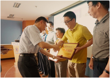 微纳党支部副书记宁晓辉作为支部代表接受表彰并在会上分享了支部建设经验,作为少有的教师学生共建的党支部,微纳党支部在组织构建上成分多元,在活动筹划上独具特色,教师党员与学生党员深入交流、共同进步,以“师生共建,朋辈相携,以党支部为平台助力团队发展”为创建主题,取得了不错的成绩。