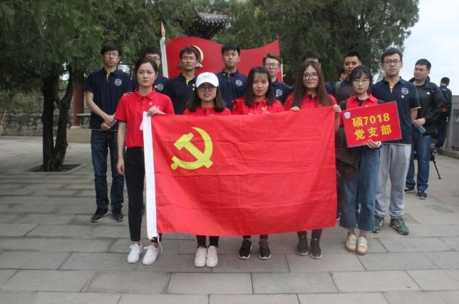 红色之旅第一站是宝塔山。怀着敬畏之情,硕7018党支部走进了这座象征延安的地方。“几回回梦里回延安,双手搂定宝塔山”,贺敬之的名句热情地讴歌了宝塔山在中国人民心目中的神圣地位。支部在党旗面前重温入党誓词,增强党员意识,明白身为共产党人的使命和担当。 延安有宝塔,巍巍高山上;高耸入云端,塔尖指方向;红日照白雪,万众齐仰望。党支部以一首小诗表达了对这个红色革命根据地的敬仰和对党的热爱。