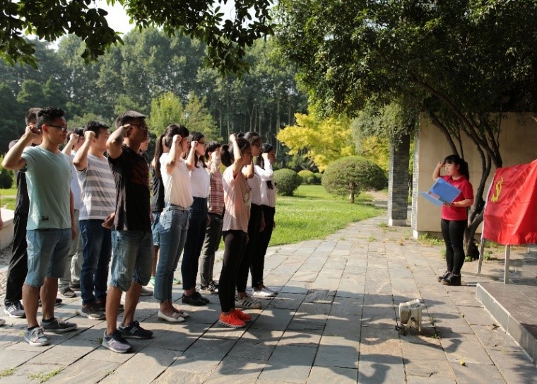 党建工作组组织新发展的预备党员在彭康校长雕像前,开展以“入党宣誓大会暨学习西迁精神”为主题的迎“七一”活动。