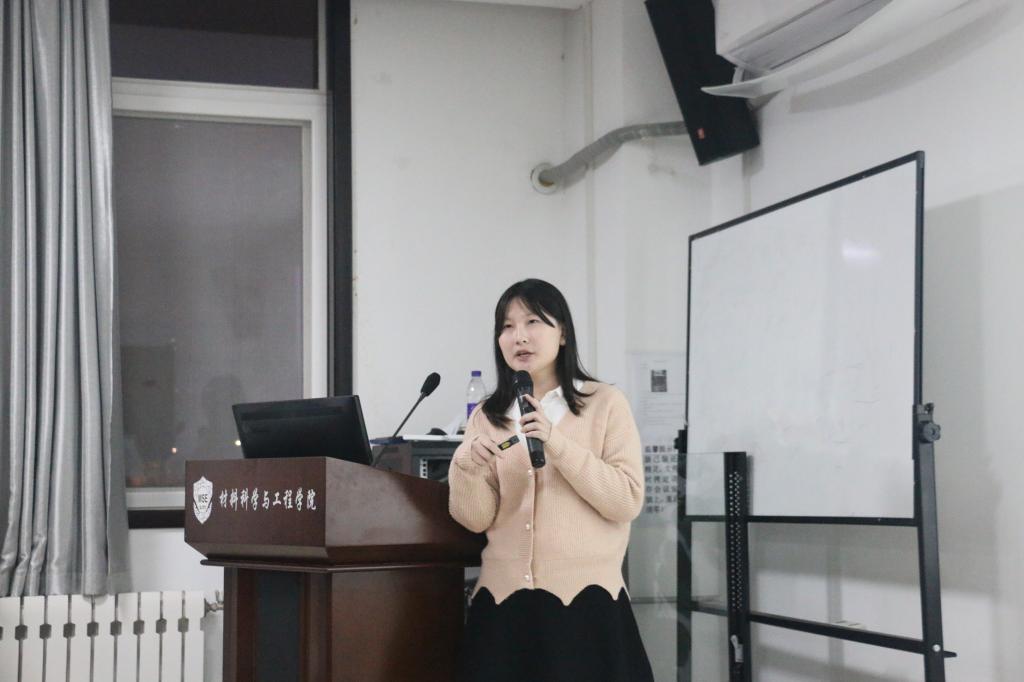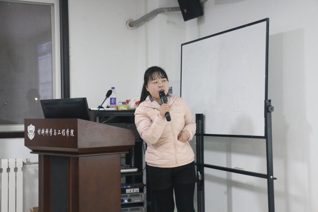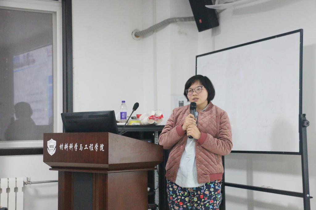 分享会现场,王双玲向学生们展示了研究生在学习与科研之外的丰富生活。她着重介绍了自己的学生工作经历,即党支部的建设,“如何提高向心力、凝聚力”等。王双玲分享道,她们党支部的建设有两个亮点,一是“建立严格的制度”,二是“丰富多彩的组织生活会”。另外,她也讲述了开展活动方面的个人经验,令人收益匪浅。