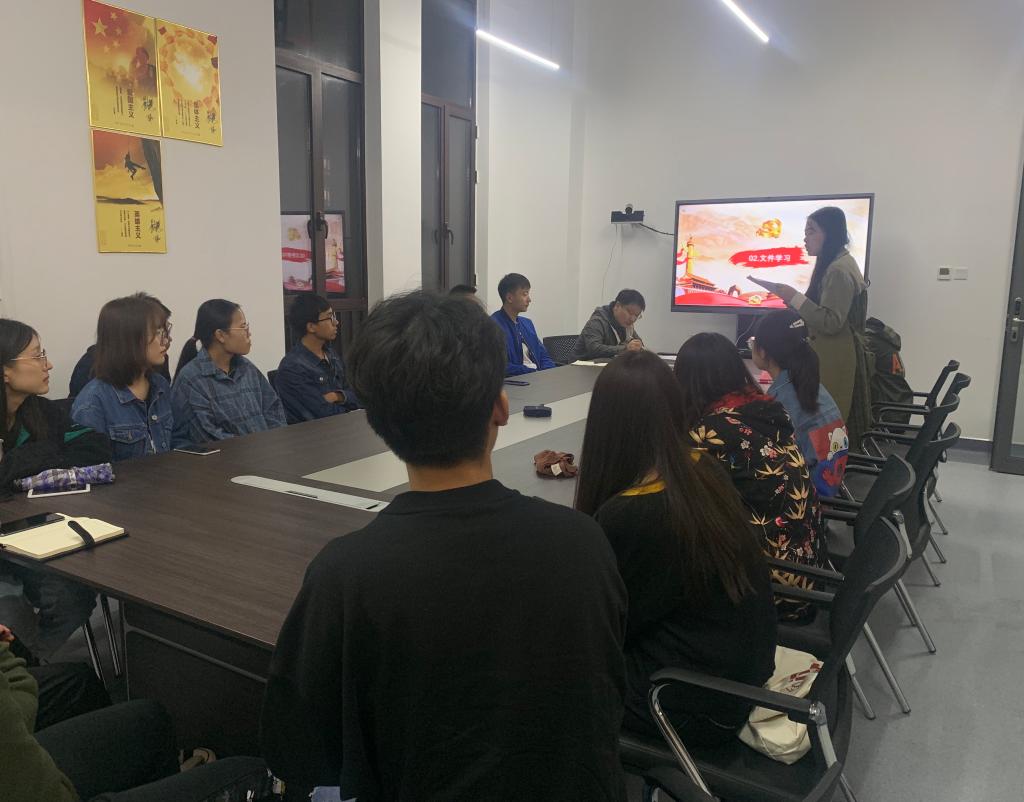 9月17日晚, 硕9021党支部在创新港3-2053会议室召开研究院第一次新生党组织生活会,全体新生党员、部分积极分子、党委副书记魏炜及辅导员王恺悦参会。在简单的自我介绍后,辅导员带领大家学习了《中共8X8X
