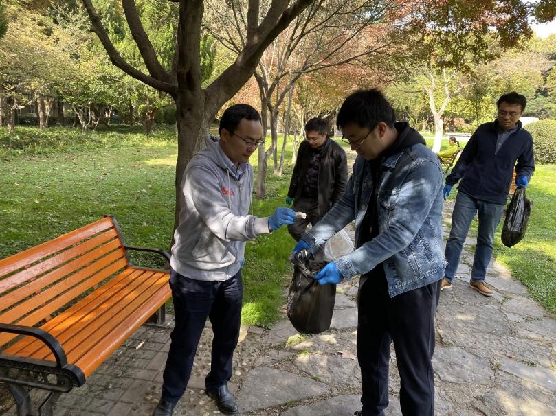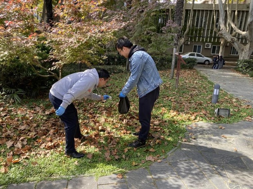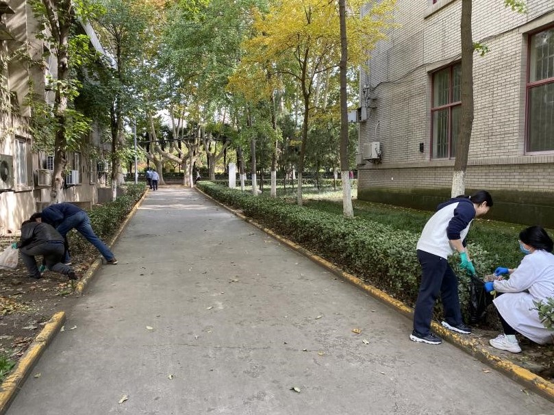 活动前,支部书记张兰老师对卫生清洁区域进行了划分,一个小组负责仲英楼下卫生区域,另一个小组负责西花园区域。活动中,各组成员对所属区域进行了认真清理。有的同志拿着抹布认真擦拭栏杆,有的拿着铲子清理地上的垃圾和枯叶,有的直接用手捡拾垃圾等。活动持续了两个多小时,师生们的心辛勤劳动换来了校园一角的环境清洁。在活动中,老师、同学们不怕脏,不喊累,不抱怨,相互协作,共同配合,认真打扫卫生。