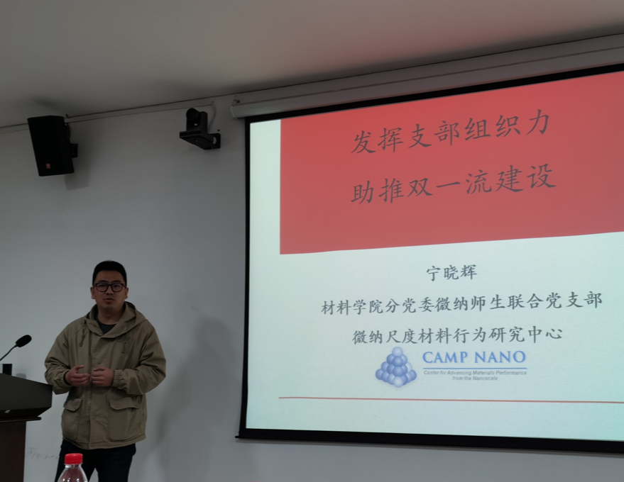 院办与实验室党支部书记吴文媛、微纳师生联合党支部书记宁晓辉、硕9016+9018党支部书记孙雅薇和硕0022党支部书记王志英分别进行主题为如何开展支部组织生活的经验分享。
