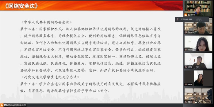 之后,组织委员何昕介绍了《中华人民共和国网络安全法》的相关内容。增强党员意识和党性修养,加强对群众的组织、宣传、凝聚和服务,共同提高法治素养,自觉营造清朗网络空间。