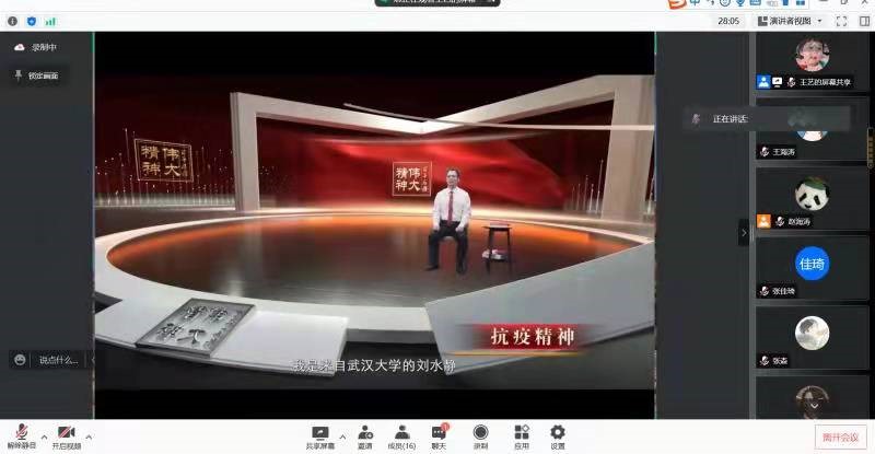 王艺同志和大家观看了抗疫精神的短片。伟大抗疫精神,是支撑和激励全党全国各族人民英勇抗击疫情的强大精神力量,是中华民族伟大民族精神和党的优良精神传统在新时代的新发扬,是社会主义核心价值观在抗击疫情这一特殊战斗中的践行和彰显,是当代中国人民精神风貌和中国特色社会主义精神优势的生动体现,是中国精神的生动诠释。当前,西安也正在经历严峻的抗疫阶段,我们作为在校大学生,是被保护的最好的一批人。我们更应该感受到社会对我们的关怀,并在之后通过自己的努力回馈于社会。