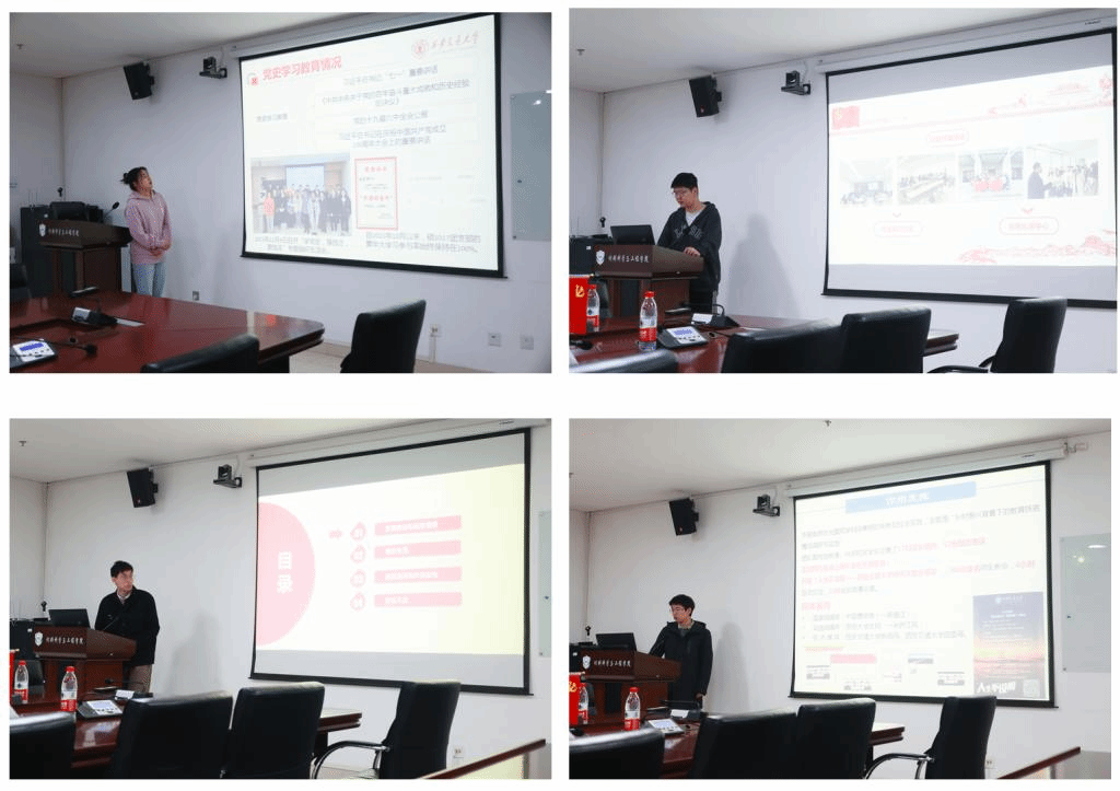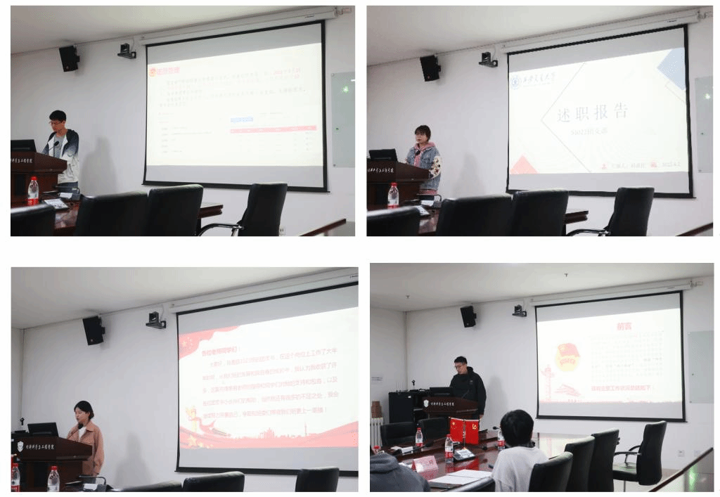 研一新生9个团支部参评,由团支部书记依次进行述职答辩,学院党委副书记魏炜、分党委秘书兼团工委书记吴文媛、团工委副书记吴国娇、学生团工委副书记武文硕作为评委参加会议并做总结发言,会议由武文硕主持。