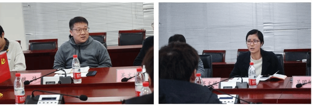 团工委副书记吴国娇老师首先肯定了各团支部在自评和他评方面的开放心态与认真态度,同时对团支部的日常事务工作以及暑期实践、志愿服务等方面进行评价,并鼓励大家多多沟通学习,互相取长补短,通过共同扶持、交流与帮助开拓 学院团工作做得更好。在推行党团班一体背景之下,团支部工作愈发重要,吴老师也对各位团支部书记寄予深切厚望,并从规程规范、党建带团建以及暑期实践、青年大学习等工作方面提出问题与相应的指导性意见;学生团工委副书记武文硕提出自己对于团支部工作开展的想法。首先他对部分团支部积极开展文体活动这一工作表示肯定,在促进支部凝聚力、缓解同学科研压力等方面有积极作用,但在党建带团建方针指导下,团支部活动更应该提高团员的思想政治觉悟,加强对团员的思想政治引领,从而能够更好地为党培养优秀的后备人才。