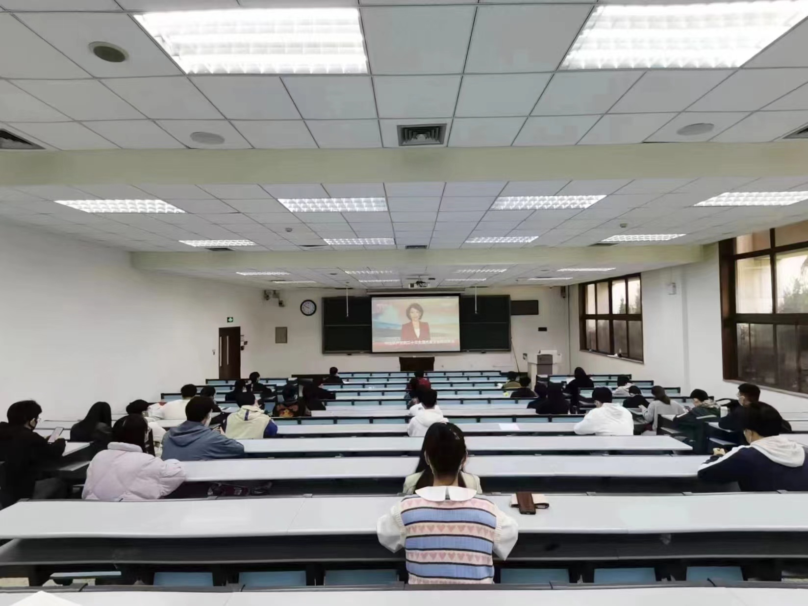 文治彭康本科生师生联合党支部集体观看了中国共产党第二十次全国代表大会开幕会。本次观看活动在主楼C-105教室举行,8X8X