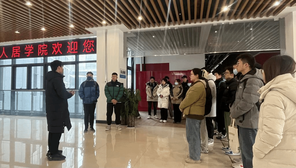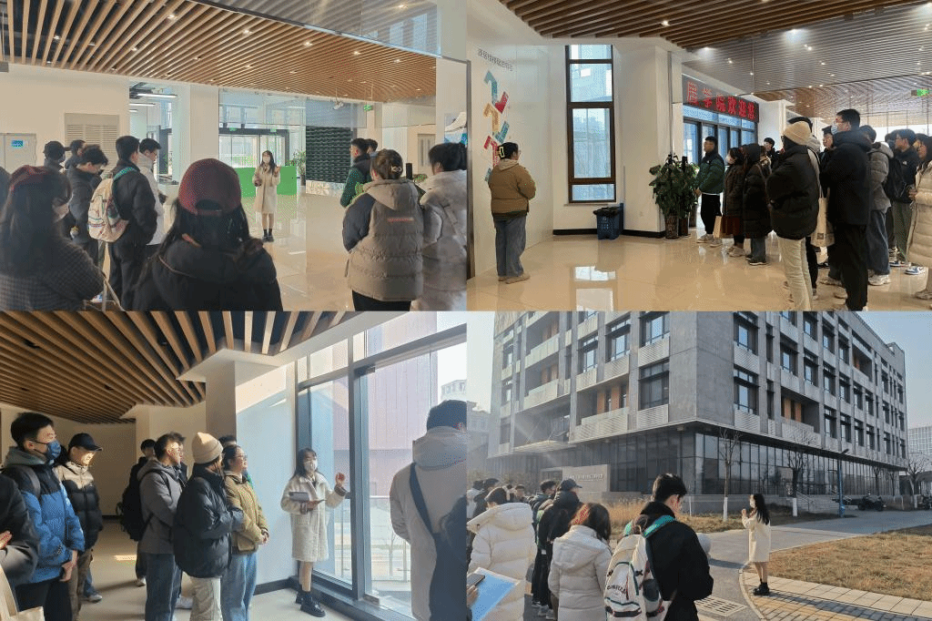 人居学院2023级学硕党支部钱旭丹带领全体同学参观了创新港源居楼(7号楼),从功能布局、流线组织、技术应用等几方面为大家进行了详细介绍。该建筑由人居学院师生团队联合自主设计,是一座“自然能源协同转化与利用的低碳建筑”,未来将在楼宇内展开二十多项实验研究,如EIPV/T、主动与被动式结合的多种绿色低碳技术等,可有效实现技术创新和专业实践的融合,推动绿色能源建筑技术的创新与转化。讲解过程中,人居学院2023级学硕党支部书记曹瑞将建筑设计、施工技术等过程与材料知识相结合,从学科交叉的维度向大家展示了不同学科碰撞所产生的奇妙火花,为大家未来科研创新打开了新的思路。