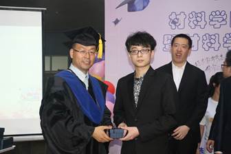 歌曲过后,到了大家期待已久的红毯秀。男生们身着笔挺的西装,女生们穿上精致的礼服,在导师和朋友的陪同下,缓缓走过红毯,红毯的另一端,单智伟院长为每名毕业生颁发院徽并合影留念。