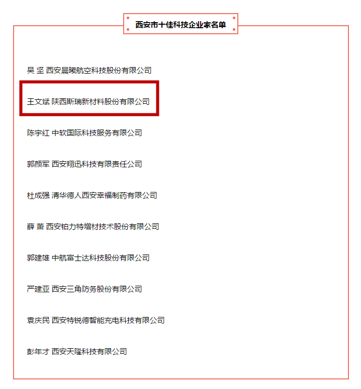 王文斌校友入选西安市十佳科技企业家榜单。