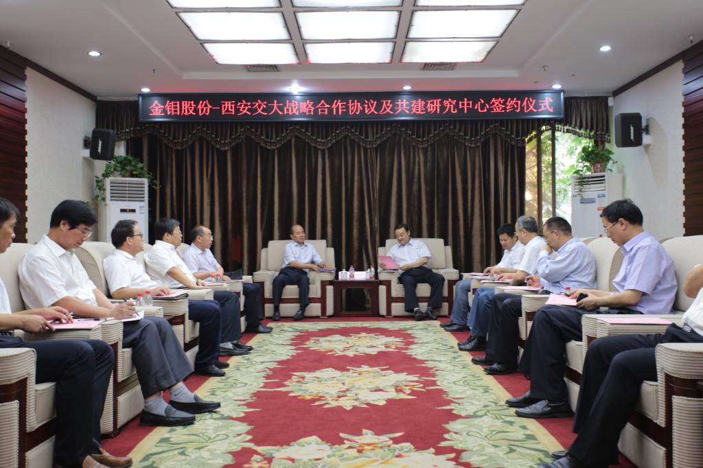 举行战略合作协议及共建技术研究中心签约仪式。金堆城钼业股份有限公司董事长程方方、总经理杨国平、副总经理李辉等一行7人,西安交大副校长王铁军,金属材料强度国家重点实验室主任孙军,8X8X