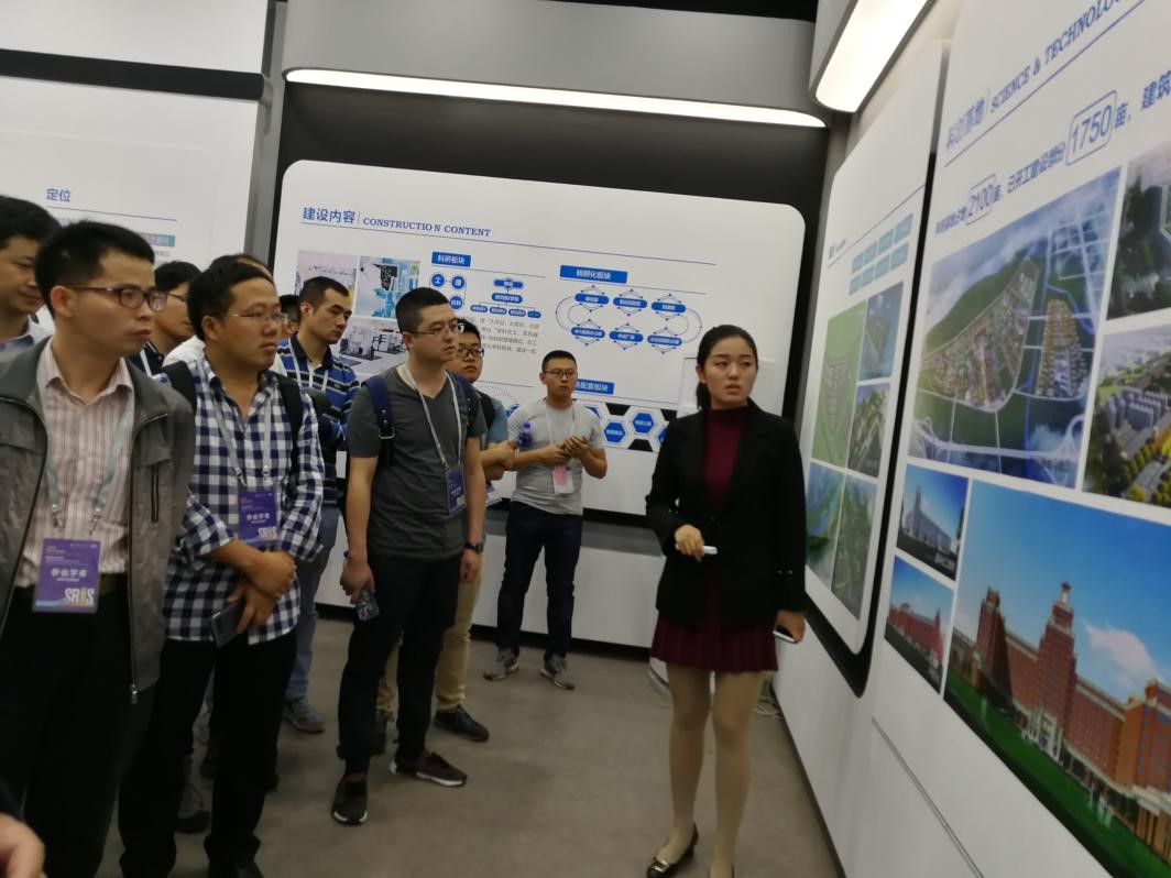 与会青年学者与9月19日下午,驱车前往创新港实地考察这座建设中的学镇,学者们纷纷感叹创新港的科学规划和“交大速度”。他们参观了创新港智慧展厅,聆听了创新港定位目标、建设内容、规划季度等情况。