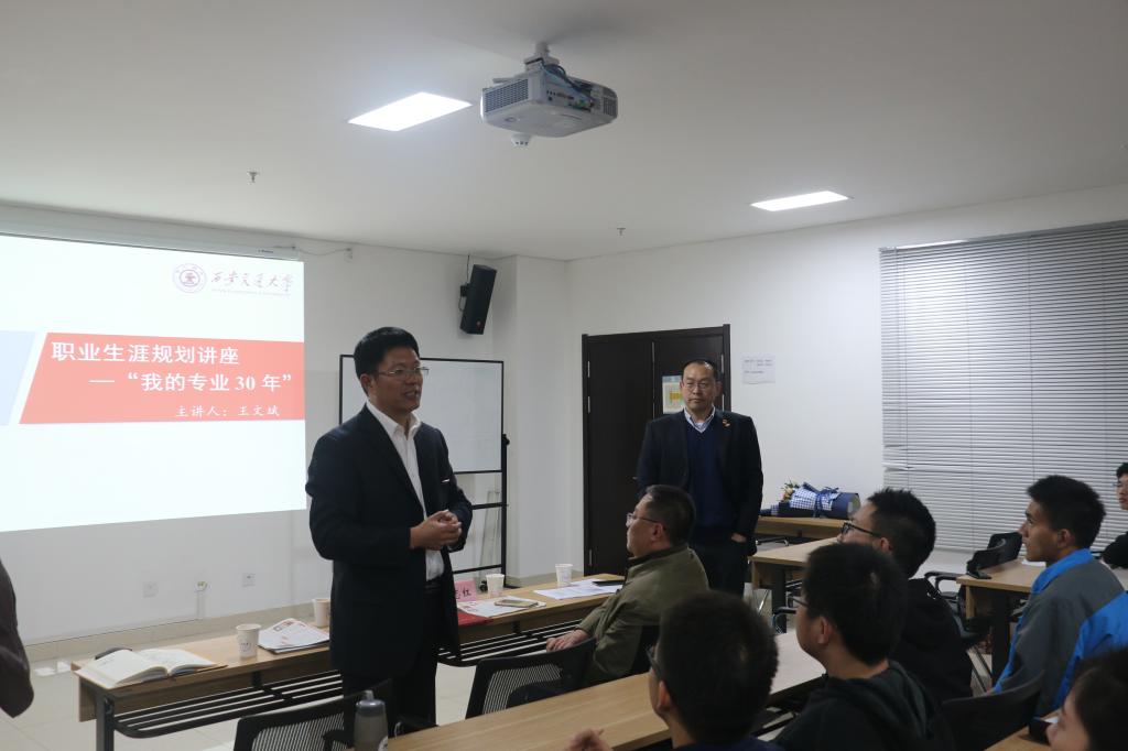 聘任仪式后,王文斌校友以“职业生涯规划——我的专业30年”为主题,从自身职业发展经验出发,讲述他从西安交大毕业到成为斯瑞集团董事长的30年奋斗故事。报告中,他引用习总书记的讲话,“核心技术是关键,但也是讨不来的,我们是时代骄子,当需倍加努力。”从最初接触制造到电力开关行业,再到国家科研尖端,风雨无阻,终于实现了为国家前沿技术做贡献的目标。针对8X8X