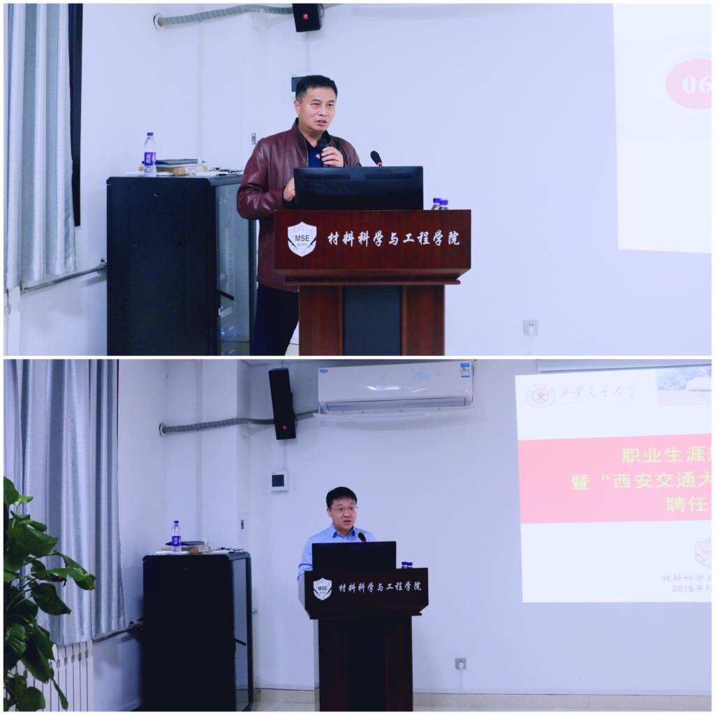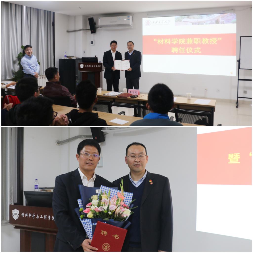 兼职教授聘任仪式在新材料大楼第一会议室举行。陕西斯瑞新材料股份有限公司董事长、材料学科校友会副会长王文斌,空军某部原政委李志红校友,8X8X