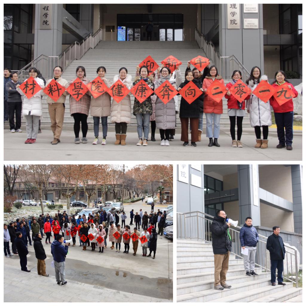 在交大发展中发挥着重要作用,做出了重大贡献。教学、科研、后勤保障工作有条不紊、更上层楼。一年又一年,材料人不忘初心、砥砺奋进,在学校“四面旗帜”、“四种文化”引领下,践行西迁精神,在“双一流”建设中努力奋进。材料人以矫健的步伐、昂扬的斗志迎接2019年,新的一年,新的征程,新的使命,材料人将立足国家需求,凝聚共识,助推创新港内涵建设,早日实现“双一流”建设梦想。