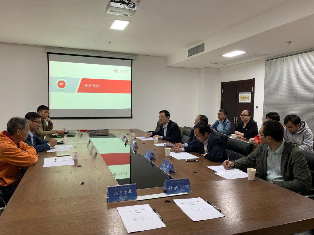 丁向东副院长在致辞中对北京金轮坤天特种机械有限公司一行表示热烈欢迎,他指出双方合作科研项目满足四项要求:原创、前沿、面向广大需求并能解决科学问题,落实“三个面向”,校企联合,优势资源互补,以科技为先导,双方共同努力,争取打造集科研开发、产品生产和联合育人为一体的中心,为解决卡脖子材料问题贡献力量和智慧。