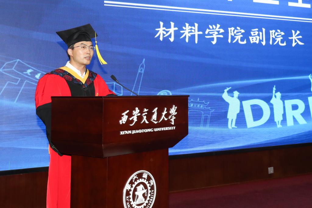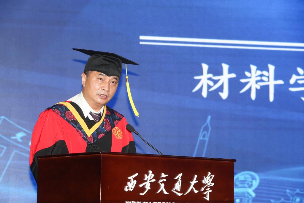 教师代表薛德祯勉励毕业生们要坚定联想信念,做一个相信梦想和敢于追梦的人。他将梦想的实现过程与材料固态相变过程相比拟,激励同学们梦想与现状的差距应是人生相变的驱动力,一个宏大的目标,特别是与国家民族发展紧密联系的目标,将会成为同学们未来发展引擎中的不竭动力。