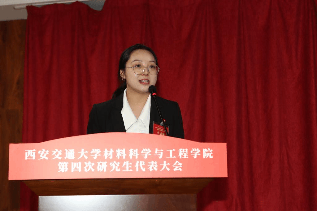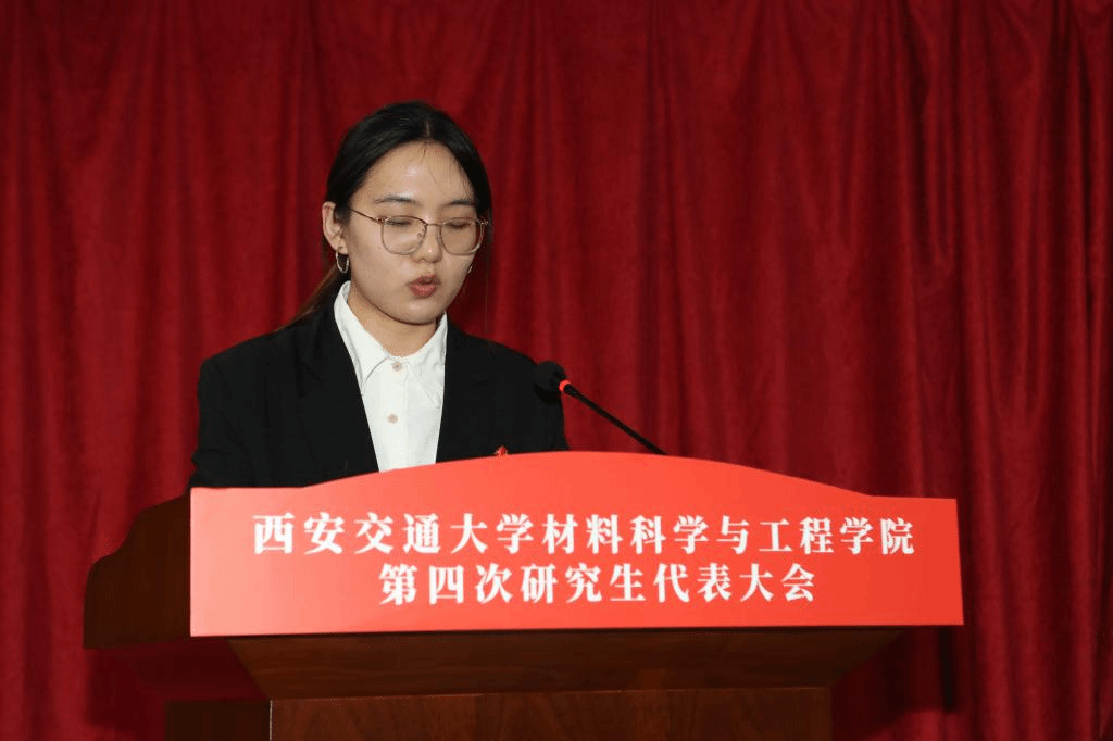 党委书记高宏在致辞中表示,本次研究生代表大会是学院凝心聚力开创研究生工作新局面的一次青年盛会,对学院进入高质量特色发展的新征程具有重要意义。同时她对研究生代表及同学提出了三点希望:一是希望同学们争做西迁精神的新传人,牢记习近平总书记的殷切嘱托,在求知的路上不断开拓进取,树立远大理想抱负;二是希望同学们胸怀国之大者,担负历史使命,将“卡脖子”问题视为挑战和机遇,立足科技前沿,为实现高水平科技自立自强做出应有的贡献;三是希望研究生代表发挥桥梁纽带作用,参与学院治理与监督,服务研究生成才成长,希望研究生会的工作体现材料人的专业与专长,展现8X8X