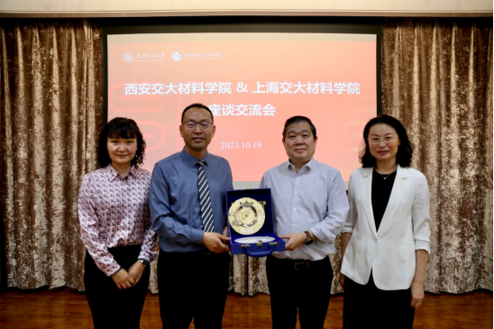 随后,双方就人才队伍建设、学生培养、科研成果转化等方面进行了交流讨论,并就科研队伍建设中共同关切的问题展开深入探讨。此次交流会议,对两所兄弟院校在学科建设、人才培养、科学研究等方面的发展有重要的促进作用,下一步双方将进一步加强两院之间的深入交流合作,为协同共建材料学科贡献力量。会后双方互赠纪念品。