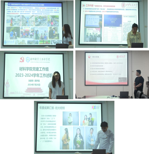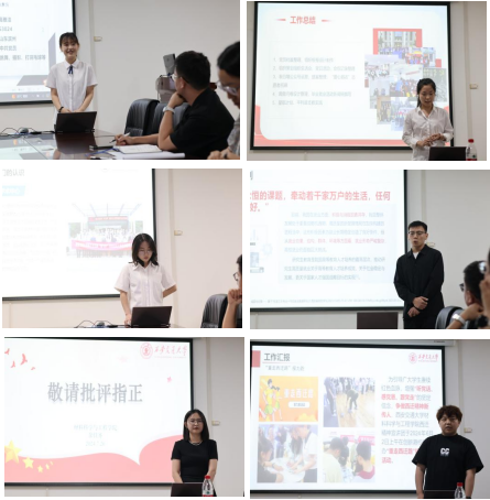 团委韩静怡从夯实基层团建、强化青年思想引领、搭建实践锻炼平台及关注学生发展需求四个方面汇报了团委近一年的主要工作内容;研究生会曹洋从思想引领、学术育人、交流建设等方面汇报了研究生会在过去一学年所取得的成绩;党建工作组刘碧荷从组织建设、宣传工作、党建活动三方面展示了党建工作组在坚持党建引领、筑牢基层党建阵地、夯实基层战斗堡垒等方面的工作;西迁精神宣讲团吴东升分享了8X8X