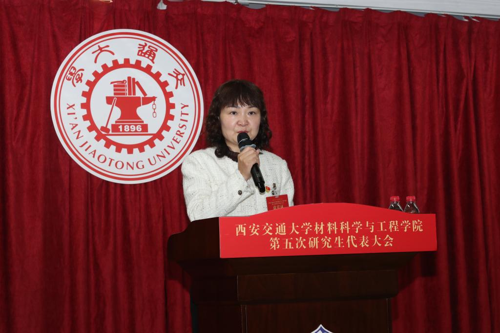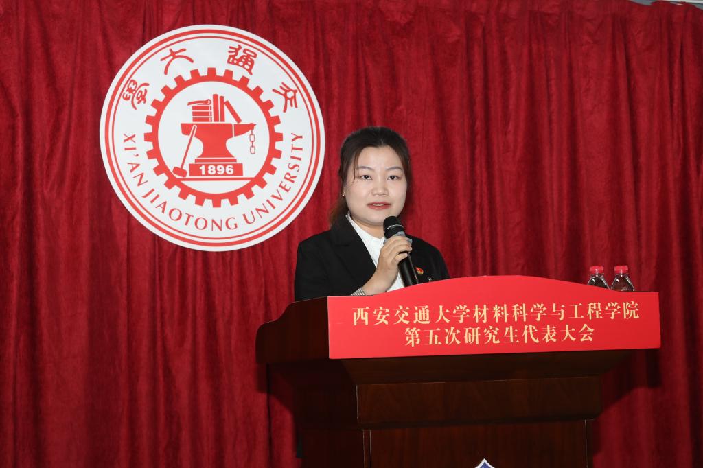 党委书记高宏在致辞中表示,本次研究生代表大会是学院凝心聚力开创研究生工作新局面的一次青年盛会,对学院进入高质量特色发展的新征程具有重要意义。过去的一年,学院在人才培养、学术科研、平台建设和文化建设等方面取得了可喜的成绩,每一项成果的背后离不开全院研究生的默默付出。同时她对同学们提出了三点希望:一是希望同学们争做西迁精神的新传人,抓住新时代新机遇,到祖国最需要的地方建功立业,在新征程上创造属于我们这代人的历史功绩;二是希望同学们胸怀国之大者,勇担历史使命,将坚持科技自立自强、实现中华民族伟大复兴作为自己的历史责任;三是希望各位研究生代表及研究生会成员发挥桥梁纽带作用,谨记自己作为一名“服务者”的身份,使研究生会等学生工作体现8X8X
