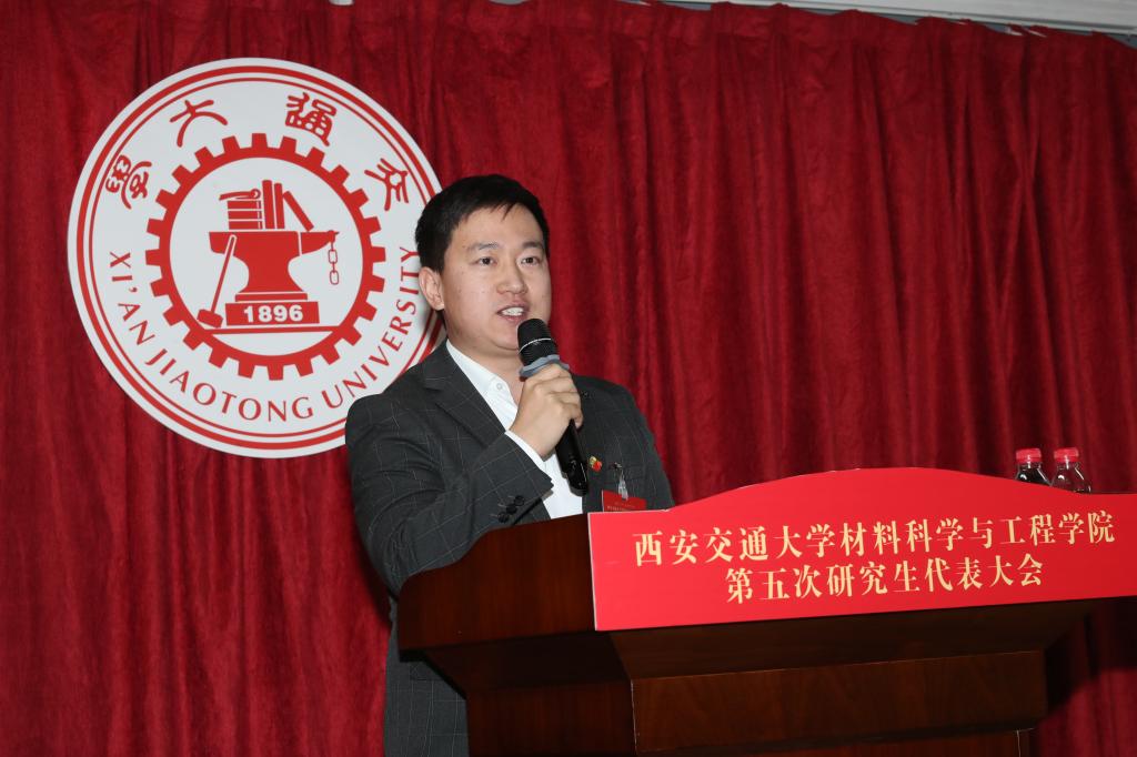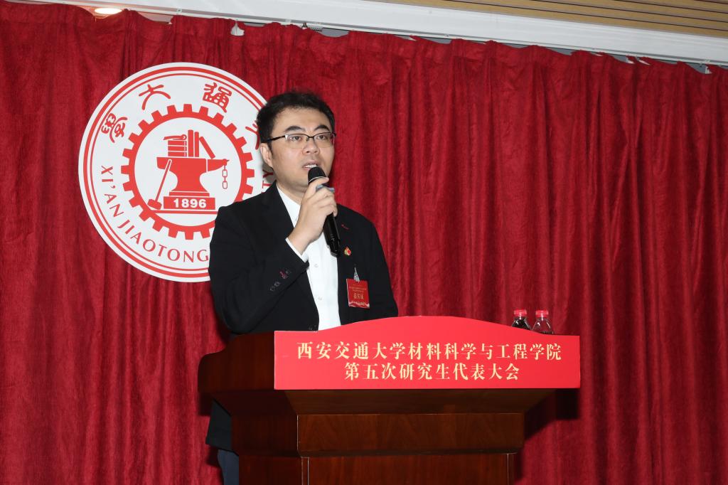 团委书记李博副教授代表学院团委向学院研究生会表达了衷心感谢。他希望新当选的各位研究生代表和主席团成员作为研究生代表要起到先锋模范作用,有大局意识,把家国情怀厚植于心;注重个人能力的提升,拥有更加优秀的综合素养;团结同学,凝聚力量,能够及时为同学们排忧解难,营造积极向上的学术氛围;成为连接老师和学生的桥梁,带领大家追求卓越,突破自我;在工作中有自己的创新和独到之处,能在新时期提出新办法、新措施,把8X8X