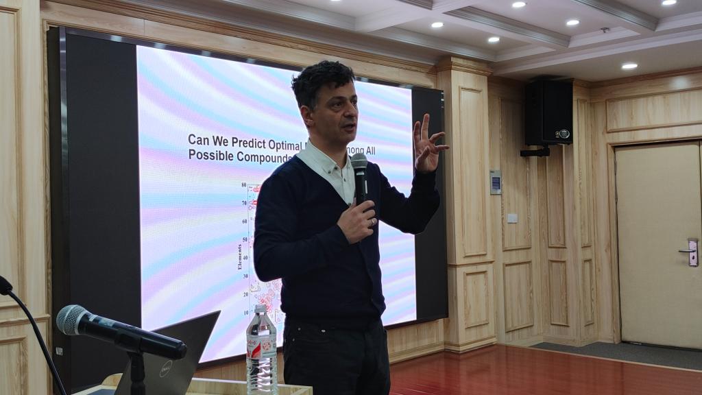 在报告会上,Oganov院士以遗传算法结合机器学习的晶体结构预测新方法为切入点,展示了如何将原本被认为不可能实现的结构预测变为现实。他列举了基于该方法发现的一系列新材料和新现象,如高压下金属钠的反Wishon转变、高温超导氢化物以及突破“教科书”化学规则的高压化合物等。同时,Oganov院士还以风趣幽默的方式勉励交大学子:在科研过程中遇到他人认为难以实现的挑战时,不要轻易放弃,耐心思考,或许你正是那个能够将不可能变为可能的人。