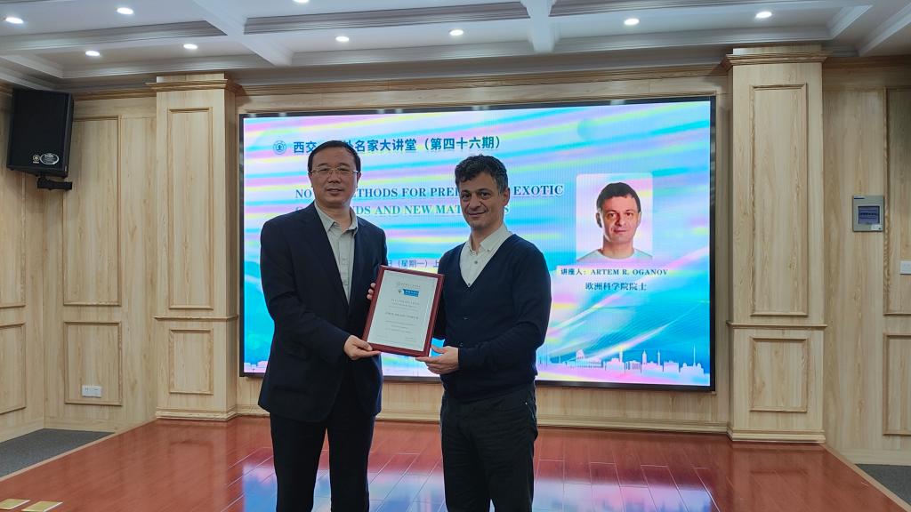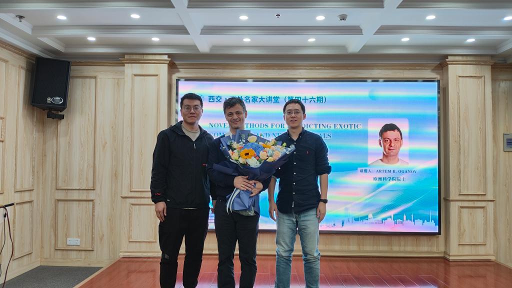 随后,Artem R. Oganov院士还做客了“西交·海外名家大讲堂”,为交大师生作《Novel methods for predicting exotic compounds and new materials》的学术报告。本期“西交·海外名家大讲堂”由8X8X