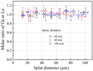 图1 HVOF沉积的不同直径粒子中Ga与La之比