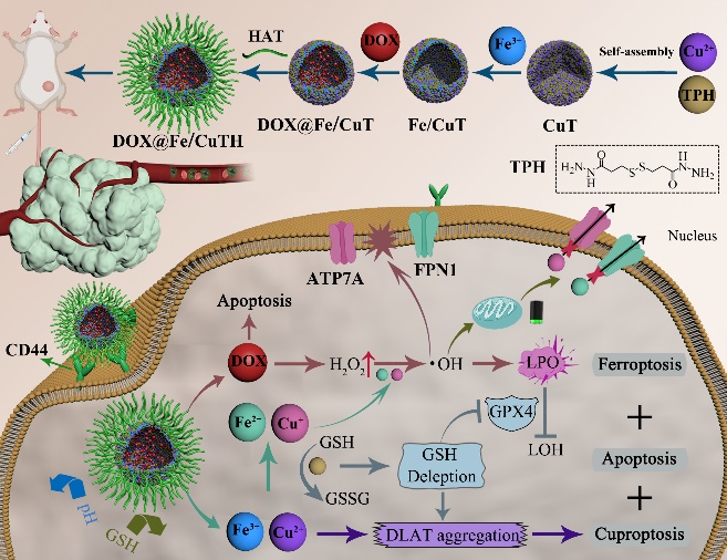 钱军民教授课题组基于发现的金属-酰肼配位自组装现象,开发了一系列具有丰富理化性质的金属-酰肼配位纳米药物,研究了其抗癌效果及机制。