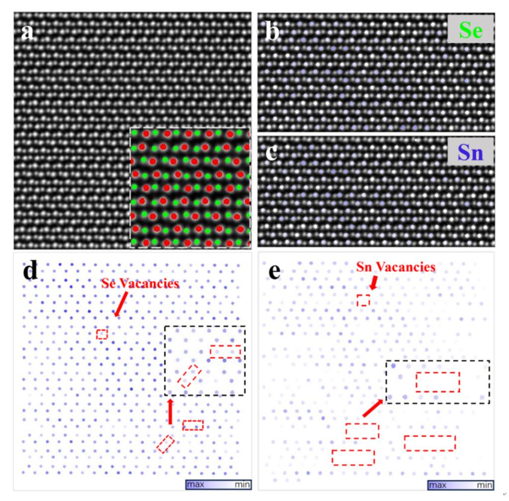 图2 双球差电镜证实原子尺度Sn/Se双空位缺陷