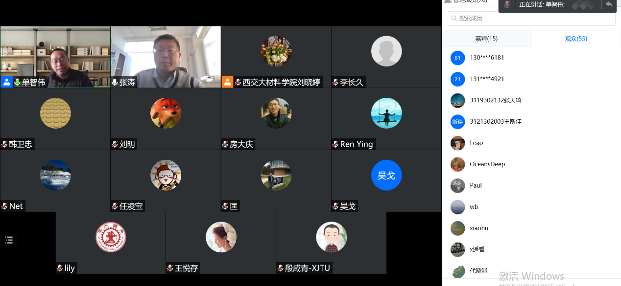 单智伟院长对张涛教授的到来表示热烈欢迎。同时他指出目前西安疫情态势依然严峻,强调全体师生一定要遵守防疫要求,避免聚集,大家要合理规划居家办公时间的学习安排,自觉自律坚守自己的主战场,为学习和科研打好基础。他表示张涛教授疫情期间的线上学术讲座是8X8X