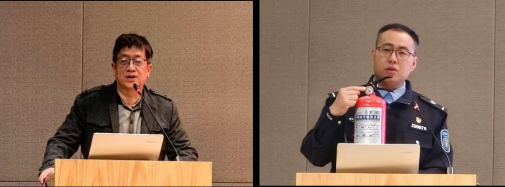 赵军荣老师主持本次会议,他结合实验室中常见的消防安全问题,讲解了潜伏在实验室中的消防安全隐患,强调了消防安全的重要性和紧迫性。随后,校保卫处刘豹虎老师介绍了校园可能存在的消防安全隐患及相应的消防安全措施,正确使用灭火器、灭火毯等消防器材,以及当安全事故发生时如何最大程度保证自身生命安全等重要内容。刘老师着重强调,消防安全与我们每个人息息相关,在日常学习生活中,我们应当时刻保持警惕不放松。