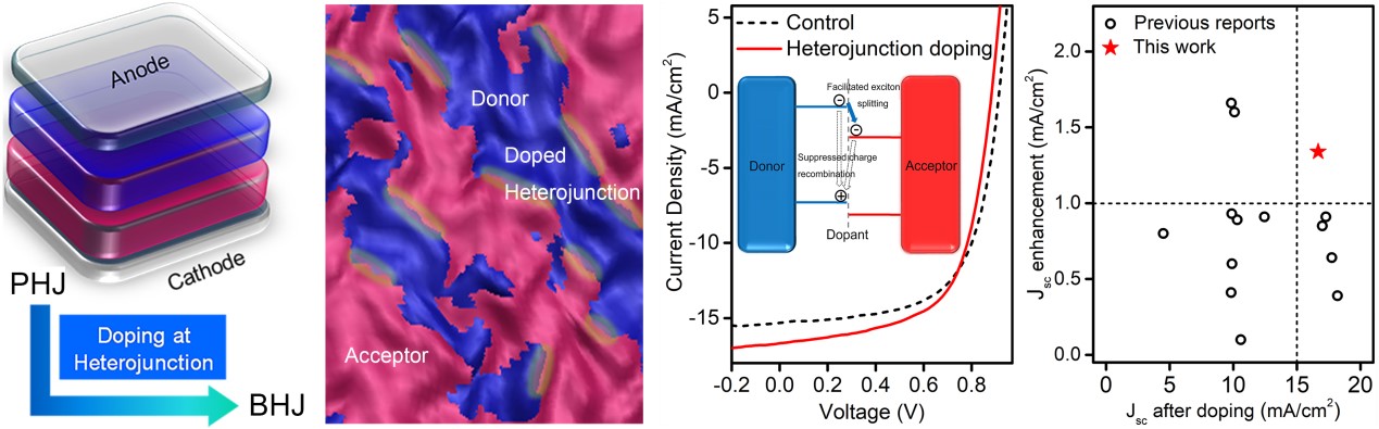 05-24有机太阳能电池的光生电荷过程包括光子吸收、激子解离、电荷传输与电荷收集四个基本步骤。目前针对这一光电转化过程仍然缺少有效、直接的电学性能优化手段。受到电子掺杂策略在无机半导体材料与器件中成功应用的启发,我们希望能将掺杂应用于有机太阳能电池中,以进一步提升器件的光电转化效率。分子掺杂剂作为一种第三组分,其在体相异质结中的分布,会直接影响掺杂效果并决定器件性能;不匹配的掺杂剂分布会导致掺杂的“零效...