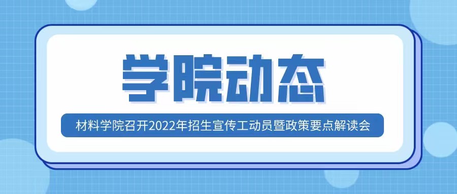 06-10为了做好2022年本科招生工作,争取更多优质生源,6月8日上午,8X8X 组织召开招生宣传动员暨政策解读会议。8X8X 党委书记潘希德、院长单智伟、副院长王红洁、招生专员孙莉秋及各省招生小组成员等70余人参加会议。潘希德书记讲到,招生宣传工作事关学校未来发展、品牌声誉,希望大家与学校统一思想、凝聚共识、群策群力、多措并举,做好本年度招生宣传工作;还要本着对学生和家长负责的态度,大力宣传学校实力和材料专业优...